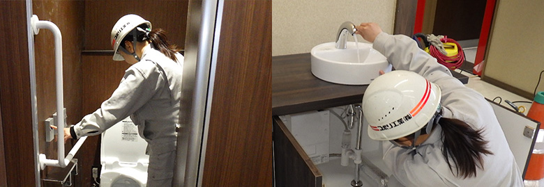 設備工事というとあまり女性が働くというイメージはないかもしれません。しかし、女性の視点で見えることもたくさんあります。8年間、現場での施工管理や、作業を通して様々なことを学びました。設備とは生活の中でなくてはならない仕事だと思います。そして、設備工事で関わる部分で、女性が使用する場所も多くあります。細かい気配りや対応がとても重要なことだと思います。私はこの仕事に就いたことが最良だったと思っています。