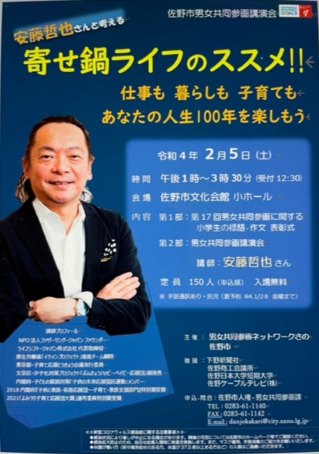 ネットワークさの主催で年1回、男女共同参画の推進を目的とした講演会を開催しています。令和3年度の講演では、当初は佐野市文化会館で開催予定でしたが、コロナ感染症拡大のため、急遽オンライン開催に切り替えました。