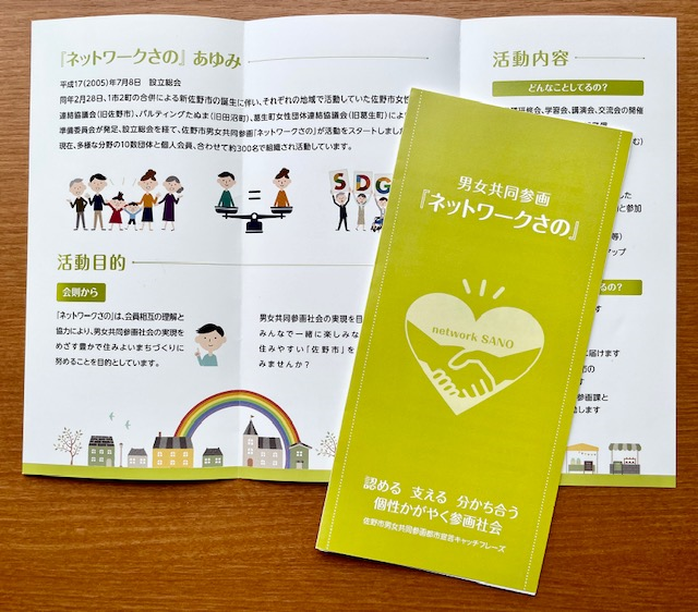 佐野市より男女共同参画促進のための講座開催を依頼され、実施しています。年間5回の講座を、「ネットワークさの」に加入する団体がそれぞれ企画運営を担当し、ネットワークさの主催として開催しています。企画講座は、市広報紙「広報さの」でも告知し、広く一般の方に参加していただけるようにしています。