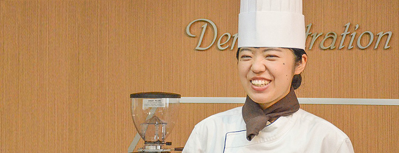 吉田さんに初めて会ったのはオープンキャンパスでした。まだ入学前なのに、調理のデモンストレーションを見ながら彼女が一生懸命メモを取っていたのを覚えています。そんなにまじめな学生は初めてだったので驚きました。