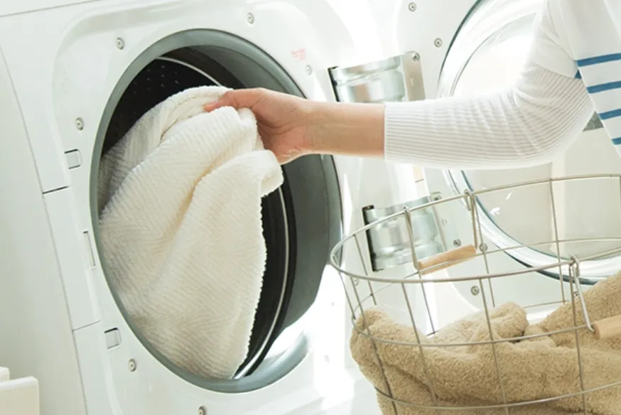 1枚加えて乾燥時間を短縮!乾燥機を回す際、乾いたタオルを入れると槽内の湿度が下がるので、乾燥しやすくなります。時間短縮になり、電気代も抑えられます。濡れた靴や上履きなどを脱水する時も、乾いたタオルを巻いて回すと、脱水効果が上がります。